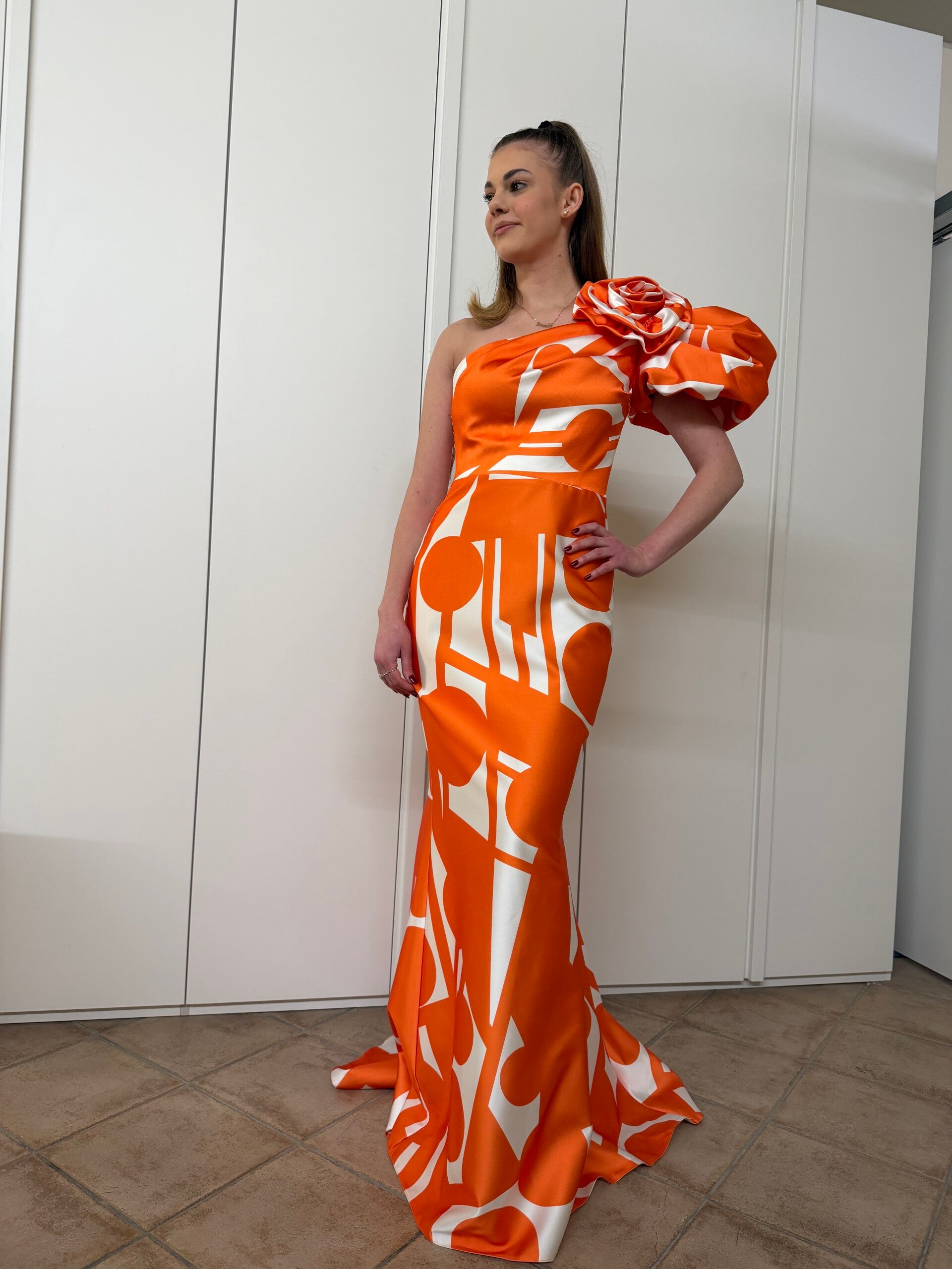 Un abito leggero e femminile che richiama i colori delicati dell’alba. I tessuti morbidi accompagnano il movimento del corpo con eleganza, mentre i dettagli trasparenti creano un effetto raffinato e sognante. Perfetto per una donna romantica che ama sentirsi luminosa senza rinunciare alla semplicità.