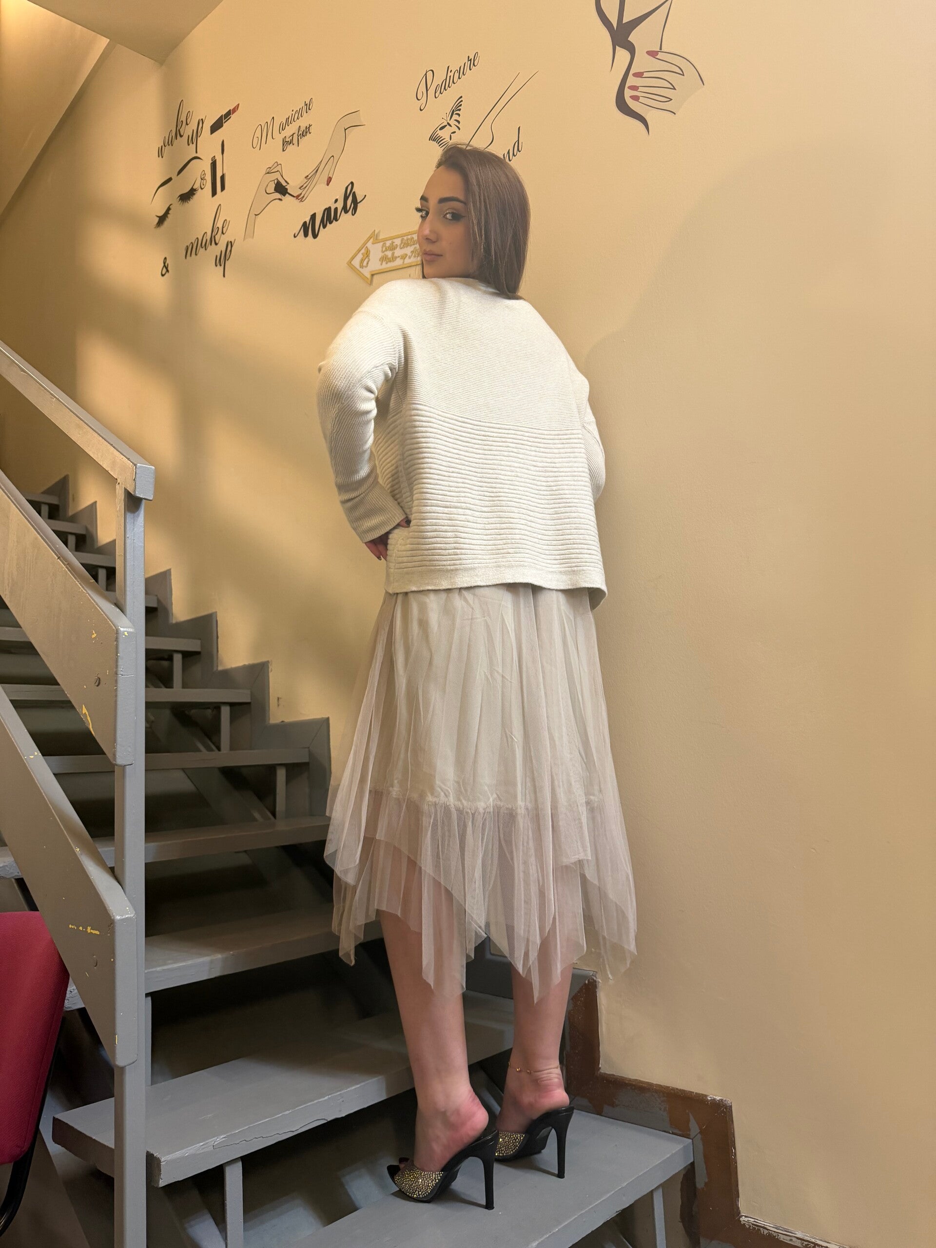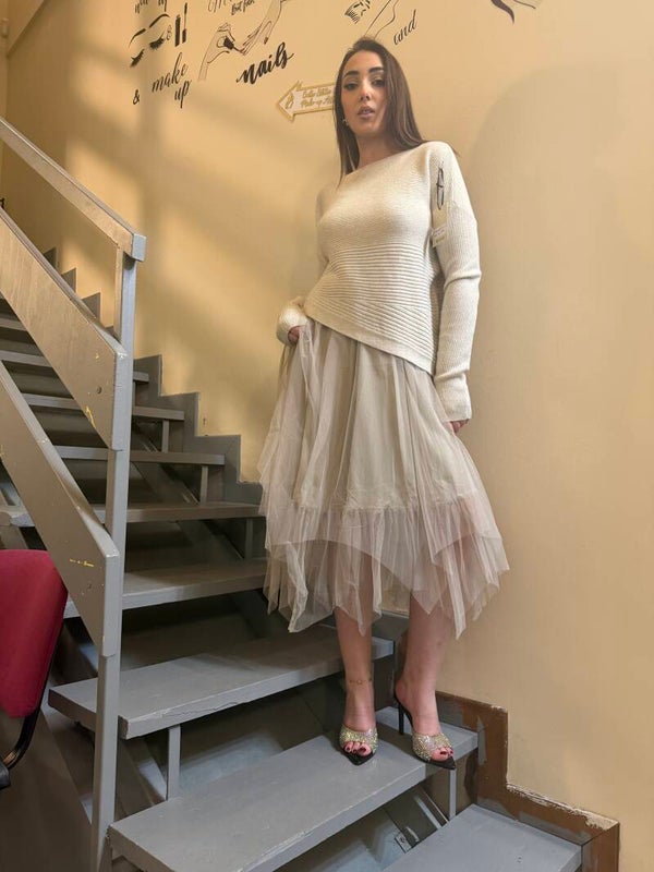 Un abito delicato e luminoso, ispirato ai primi momenti del mattino. Le linee morbide accompagnano la figura con naturalezza e donano un’eleganza spontanea. Perfetto per chi ama uno stile femminile e raffinato, capace di trasmettere dolcezza senza rinunciare alla presenza.