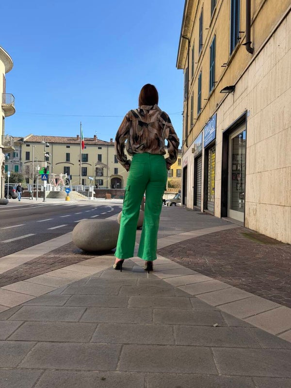 Pantaloni verdi con camicia verde
